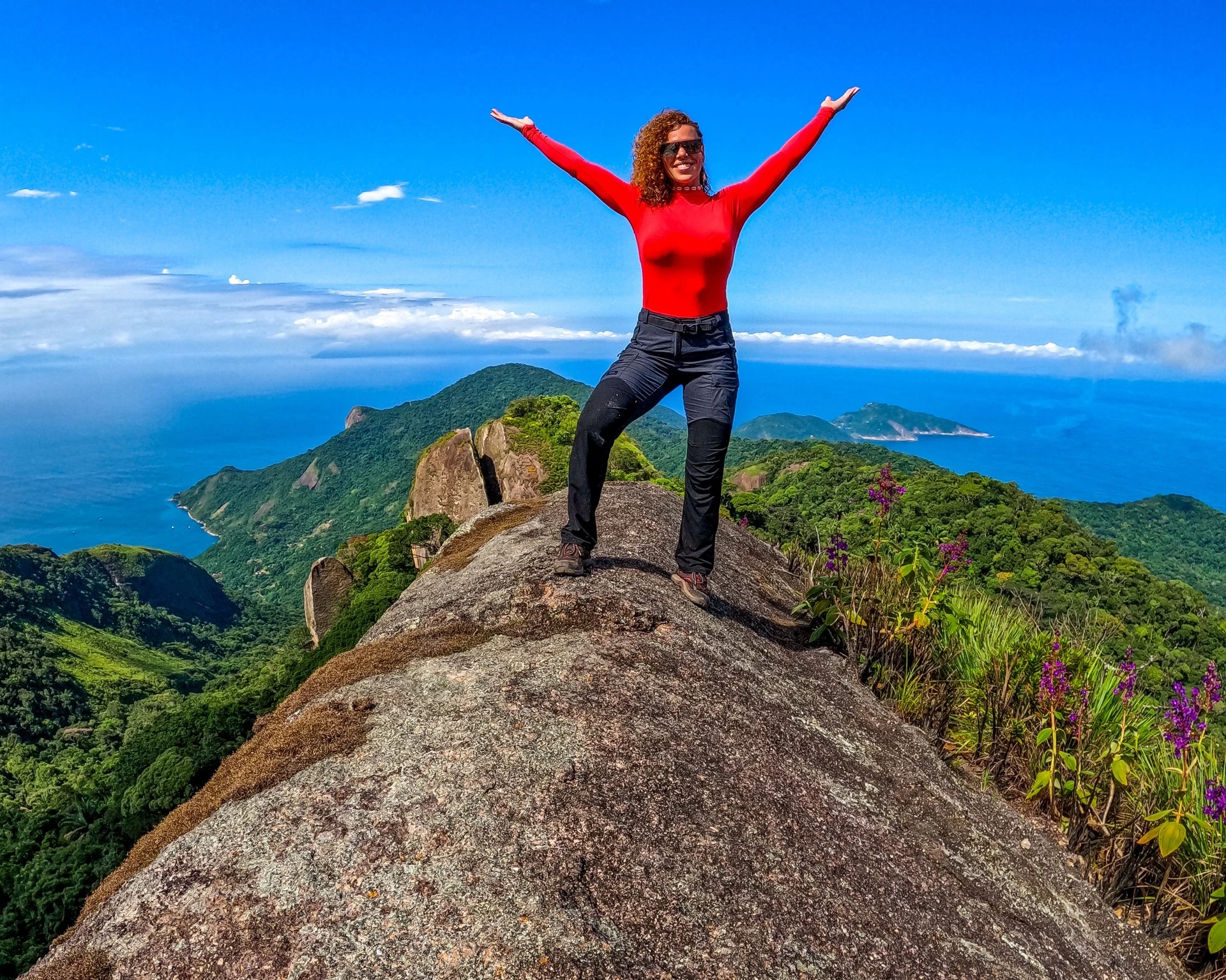 9:30 am: Subida de 2,5 km até o Pico do Pão de Açúcar, bastante degraus naturais, chegamos no cume entre 1h a 1h30, a depender do ritmo do grupo.