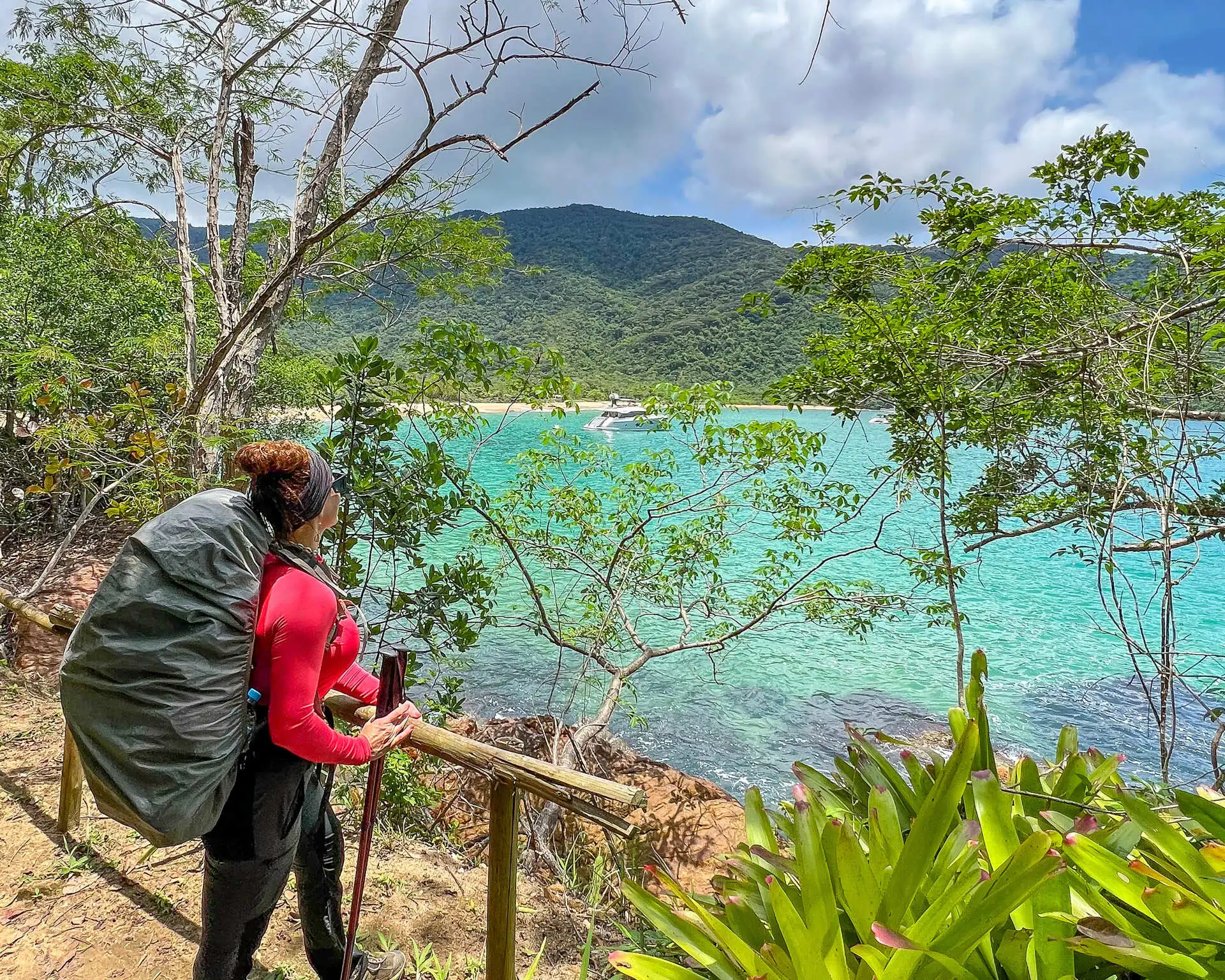 Navegamos pelo Saco do Mamanguá e desembarcamos na Praia do Cruzeiro, onde deixaremos as cargueiras no restaurante, para subir o Pico do Pão de Açúcar.